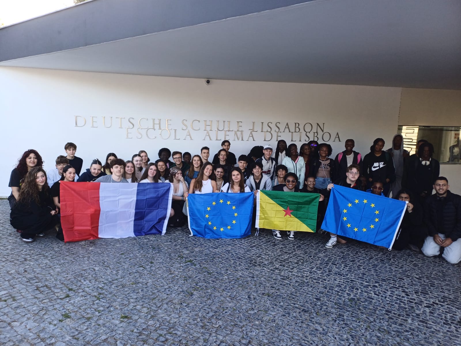 In this fifth day at Lisbon, we started the day by taking a small breakfast at 6:30 am even when we woke up tired from sleeping late due to a classmate, Emmanuel, celebrating his 18th birthday. Then, after getting ready by 7 am we went to the subway to head towards Teilhadas to get to the Deutch School. We joined the French and German students who were distant at first but really friendly eventually. We got to approach them and we stayed together from 8 AM to around noon. After that we walked to the big park near the university and then we started to get to know each other. We had to break the ice, how ? First of all, we did activities like play games in the freezing weather of Lisboa ; we exchanged our names while playing with a volley ball, and the Portuguese students gave us notebooks and a Trivia Quiz with it, like "What were our feelings about Lisboa ?" or "What typical food from Lisboa did we eat ?" and etc... Then after this long morning, we hopped in the subway to Rossio station surrounding the center of the "Old town" . But we had a small problem ; a French student got uncomfortable because of her claustrophobia but fortunately the Portuguese students were there to help. And we started a rally in the old town with a limit time to 3:15 pm. In this rally we had to approach strangers to take pictures of them with their phones, ask them to read a sentence in french, ask for their favorite football team or visit some specific places in the "Old town". It was a great time because it felt like a race against time so everyone was in a rush to get their own tasks done in time. So, to conclude this day, let’s celebrate Emmanuel’s and Nnieka’s birthday, happy birthday to you :)